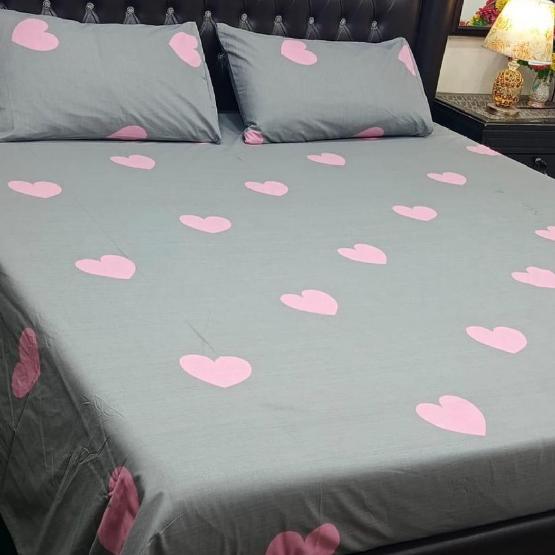 3 Pcs King Size Cotton Bed Sheet Heart Style for Bedroom Decor