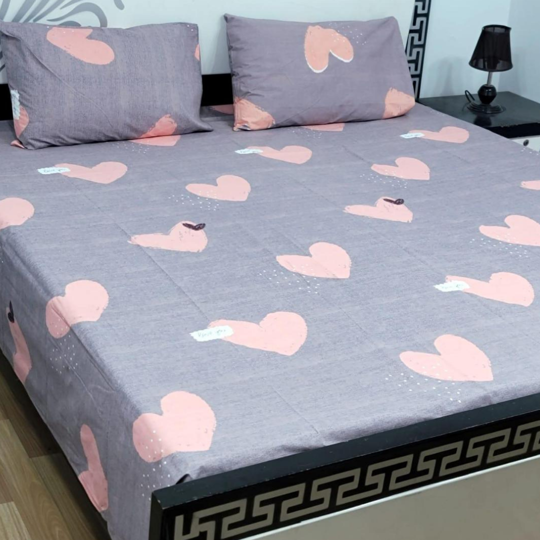 3 Pcs King Size Cotton Bed Sheet Set Heart Pattern in Pakistan