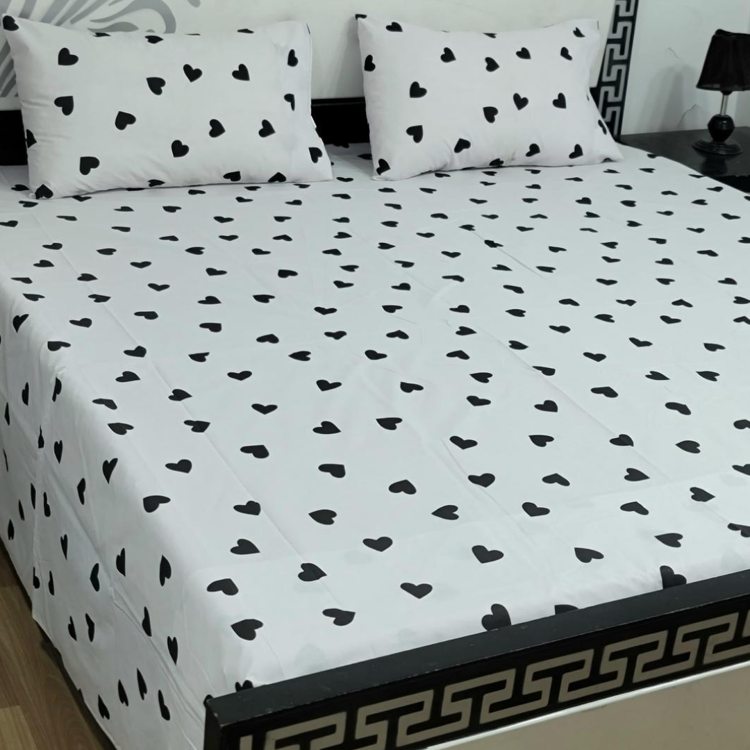 3 Pcs King Size Cotton Bed Sheet with Cute Heart Print Pattern