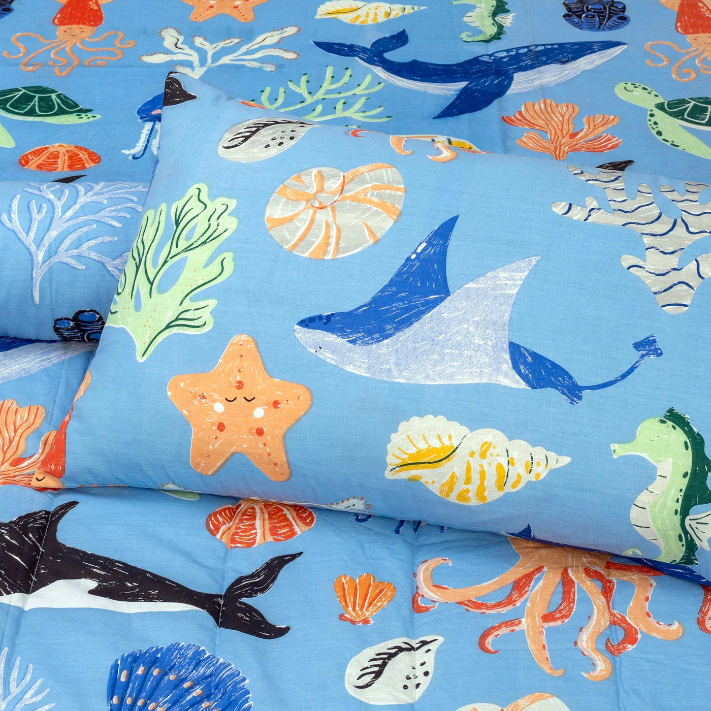 Blue Sea Life Bedding Set for Kids Quilted Comforter Pillow Cover