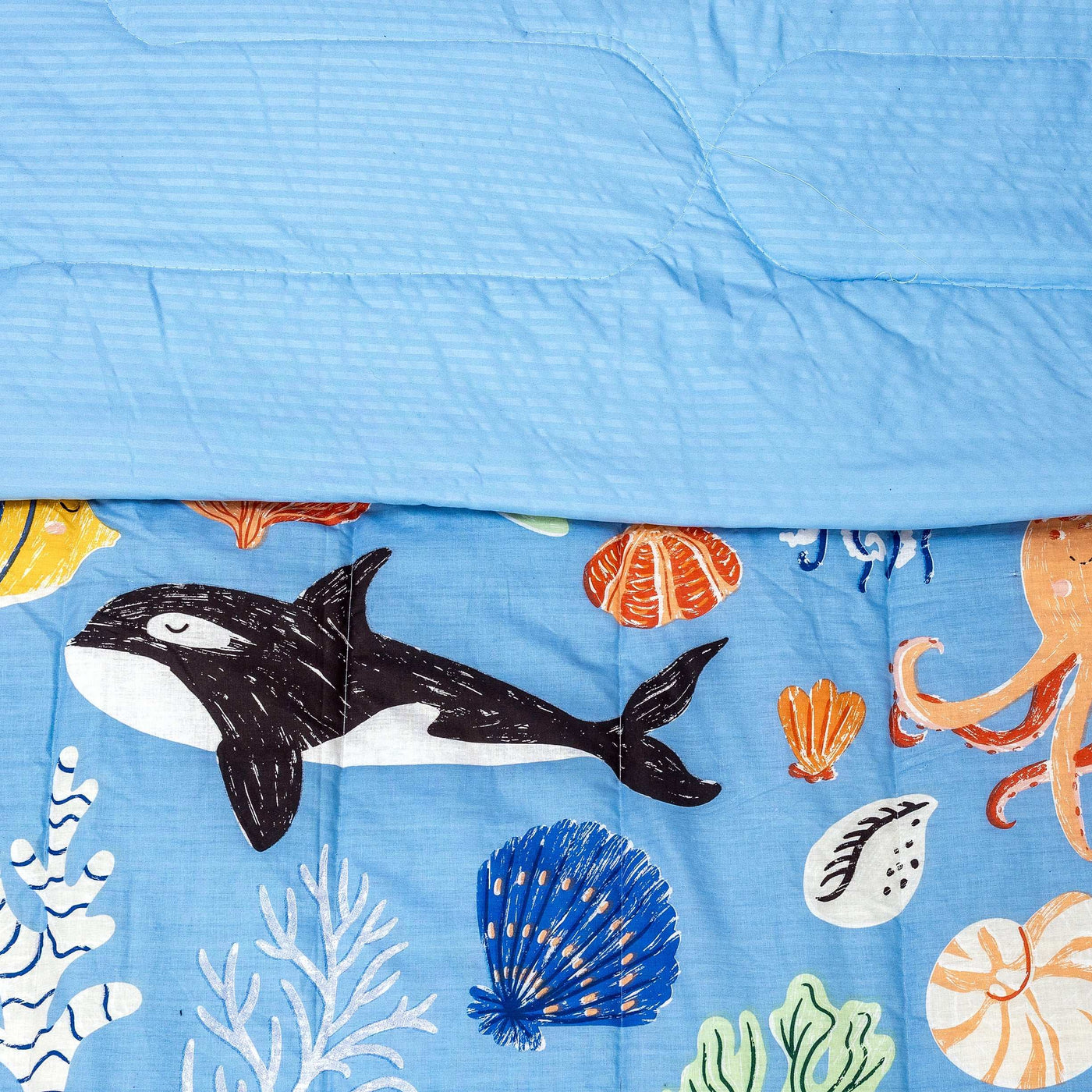 Blue Sea Life Bedding Set for Kids Quilted Comforter Pillow Cover - 3 Pcs Comforter Set