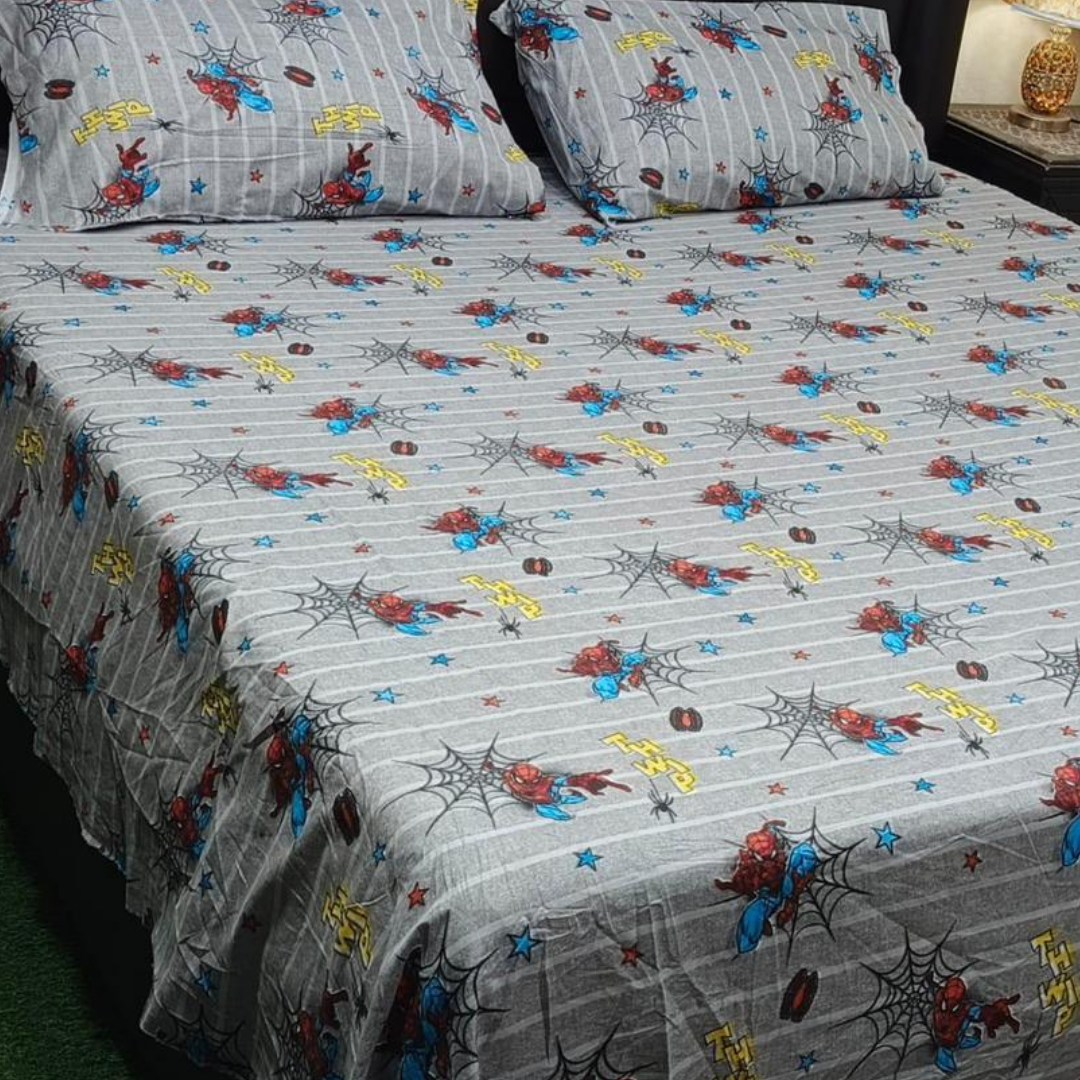 Spiderman Printed 3 Pcs King Size Cotton Bed Sheet Set for Children