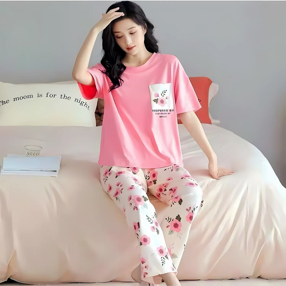 Women's Night Suit in Cotton Jersey Fabric Soft and Lightweight